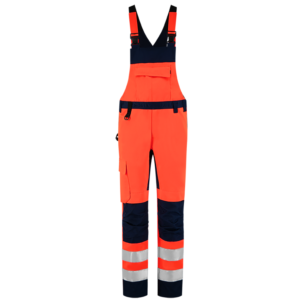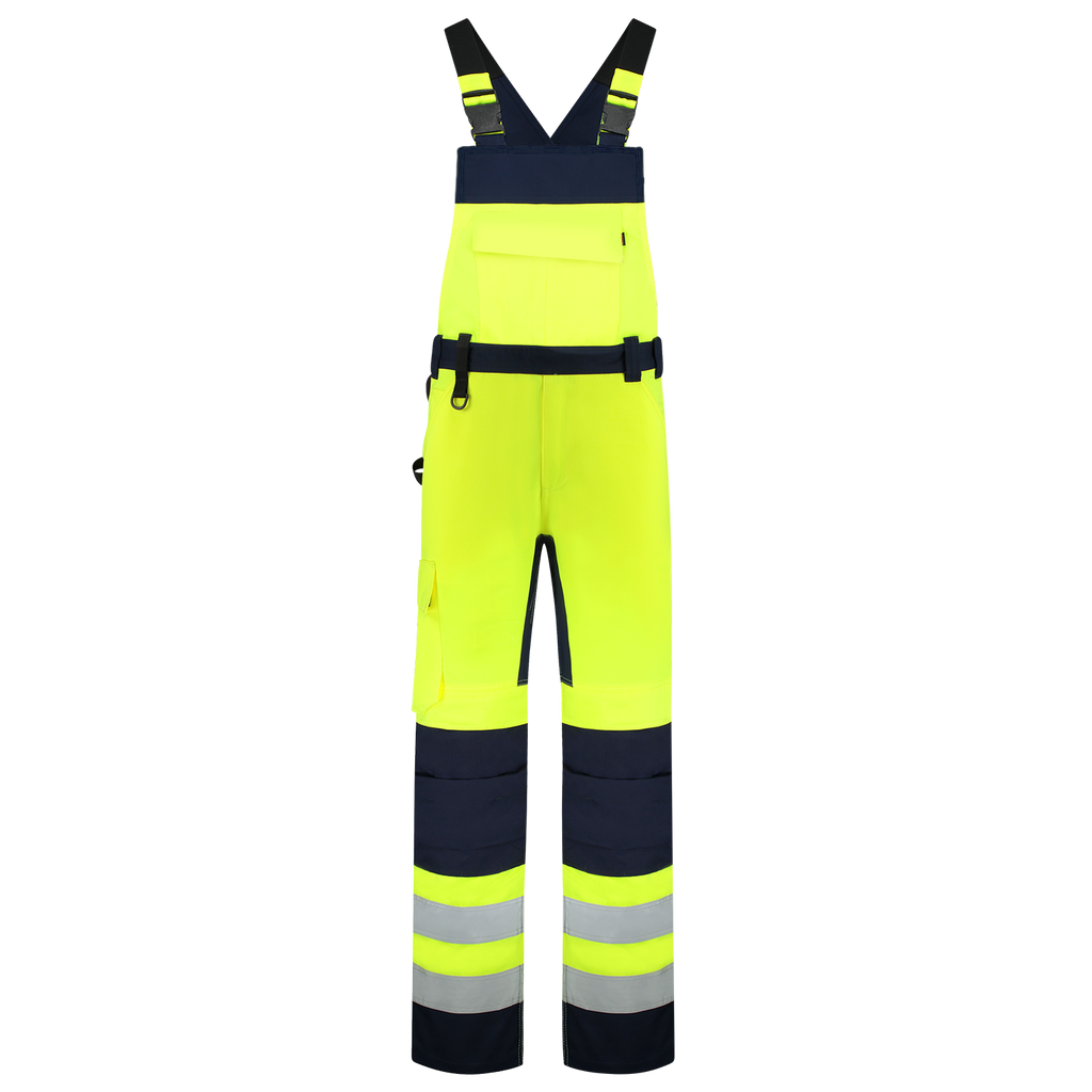 The American Overall High Vis Bicolor is part of the 20/20 Vision collection from Tricorp. This collection is fully focused on visually emphasizing the presence of the wearer, making you stand out extra during work. This is confirmed by the fact that it is EN ISO 20471:2013 class 1 certified. During work it is of course very important to be able to move well, the 4-Way Stretch in the crotch ensures this optimal freedom of movement. In addition, the overall has many functionalities to increase work convenience such as a stretch part on the lower back panel and elastics on the shoulder straps for more freedom of movement. To protect the knees, the overall is equipped with extra sturdy Cordura knee pads. The overall is adjustable by a double removable hem, which can provide about 6 cm extra length. On the front of the overall is a large pocket where you can store things. For extra storage options during work, attach the matching Swing Pockets (653004) to the belt loops. This American Overall High Vis Bicolor is available in three bicolor colors, including the new color fluorescent-red ink!