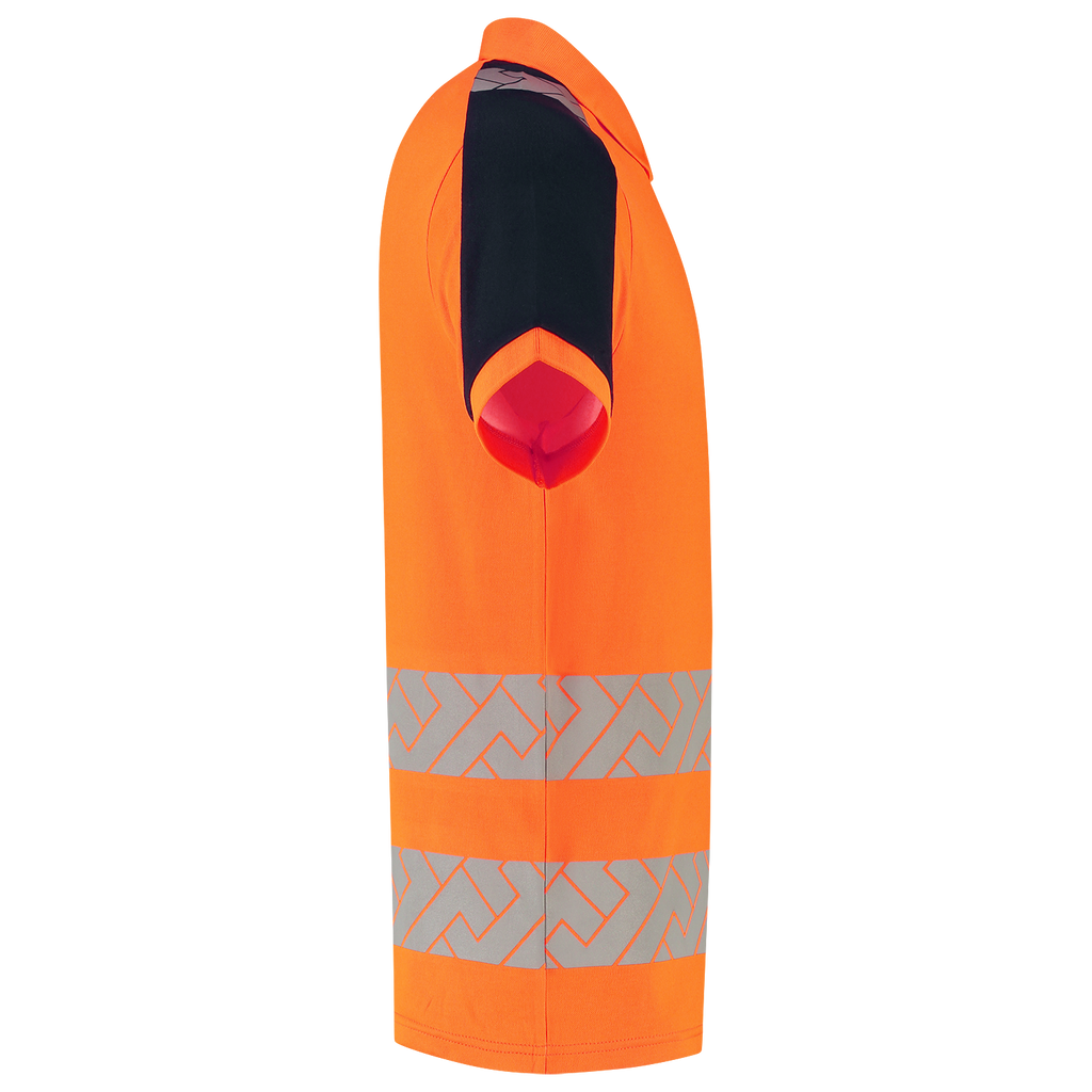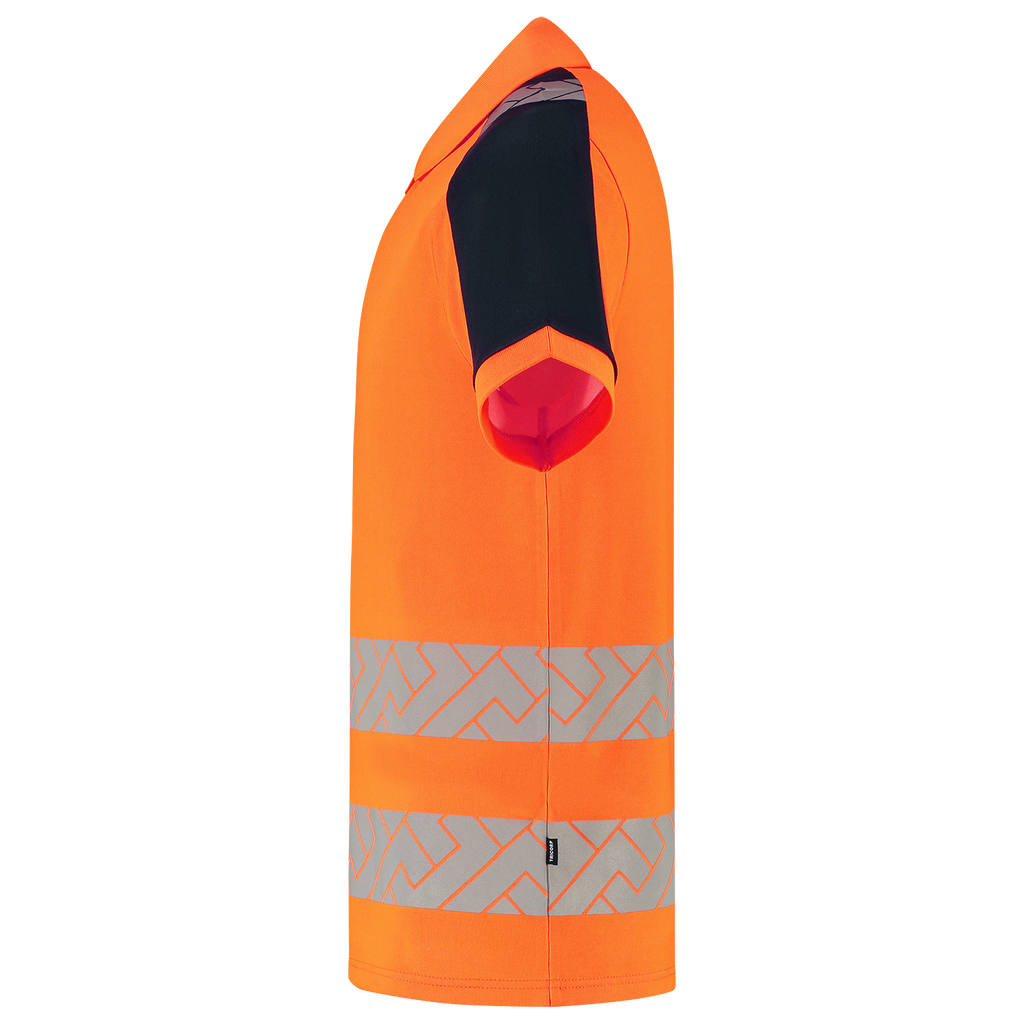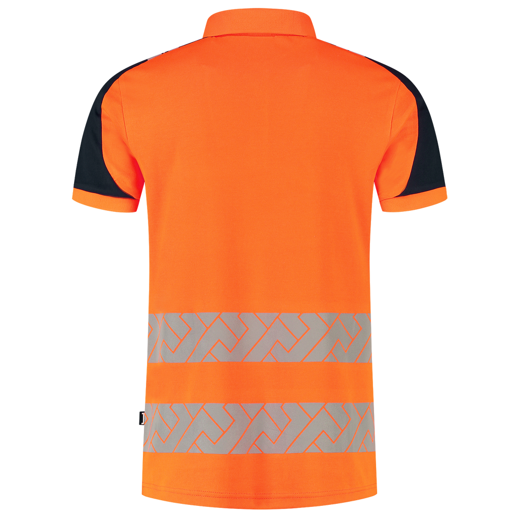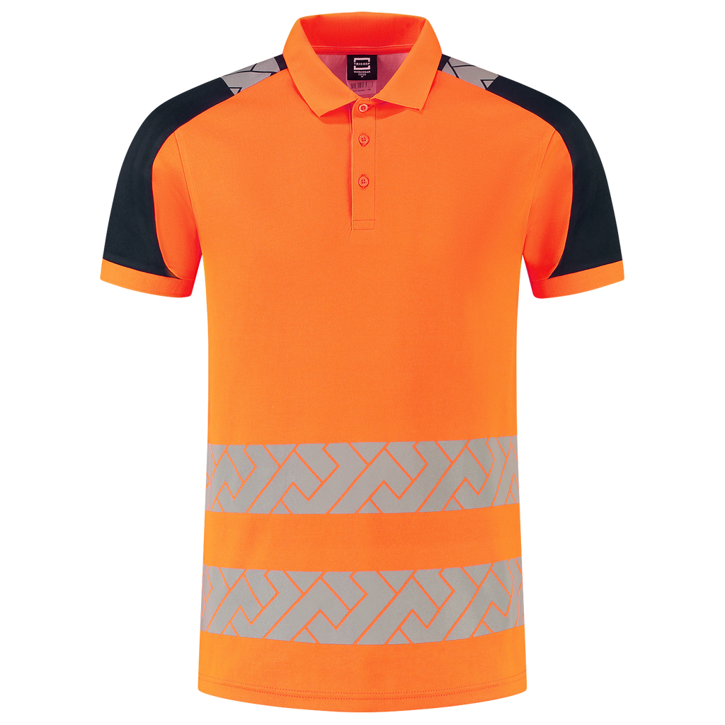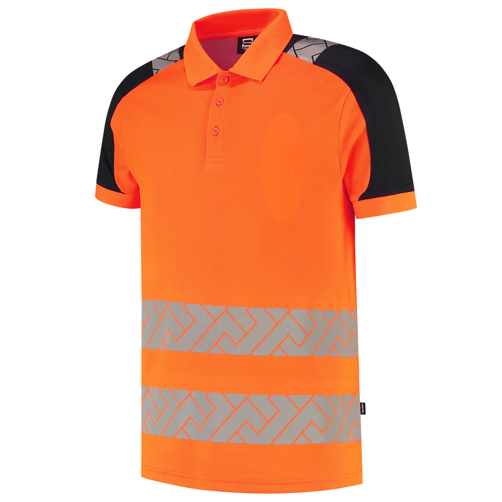 The High Vis Redefined polo shirt from Tricorp is specially designed for professionals who work in environments where safety and visibility are vital. Whether you're on a construction site, in logistics or working in infrastructure – with this polo shirt you'll always be highly visible and comfortably dressed. The bicolor look gives the shirt a modern look, while the segmented reflective striping around the torso and on the shoulders ensures optimal visibility from every angle. This means that the shirt complies with the EN ISO 20471 class 2 standard (size XS: class 1), so you can be sure that you stand out when it matters. But this polo shirt offers more than just safety. It is made of 100% recycled polyester, and a fabric weight of 150 g/m2. Thanks to certifications such as GRS and OEKO-TEX® 100, you also contribute to a more sustainable world with this shirt. In addition, the polo continues to meet the applicable safety standards for at least 50 washes of 40 degrees and the addition of Polygiene® StayFresh™ technology helps prevent unpleasant odors, so your shirt stays fresh longer, even after an intensive working day. The birdseye structure provides ventilation, while the regular fit, button closure and short sleeves offer maximum freedom of movement. And do you work outside a lot? Then the UPF 40+ UV protection offers extra security against harmful sun rays. The polo shirt is available in sizes XS to 5XL and in the colors Fluor Orange-Ink and Fluor Yellow-Ink. Combine this polo shirt with other items from the High Vis Redefined line for a complete, professional and durable work outfit.