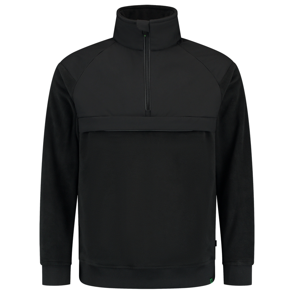 The durable Sweater Anorak RE2050 has sporty and modern lines. The anorak design is completely new! The body and sleeves of the sweater are made of microfleece in combination with a stretch ribstop on the shoulder part and part of the front and back. In addition, the sweater has a large chest pocket that can be closed with a zipper. On the back, the sweater has a ventilating mesh lining which makes working in this sweater extra comfortable. Hidden in the side seams are two zippered pockets for extra storage space. The reflective piping along the zipper and along the pocket opening on the front gives the sweater a sporty and modern look. The Sweater Anorak RE2050 is part of the RE2050 clothing package: a sustainable and circular clothing package. This sweater is made of 92% recycled polyester and 8% elastane. Thanks to the use of recycled raw materials, CO2 emissions are lower and we use less water and energy during production than with a sweater made of virgin polyester! This item is available in the colors Ink and Black and in the wide size range XS-5XL