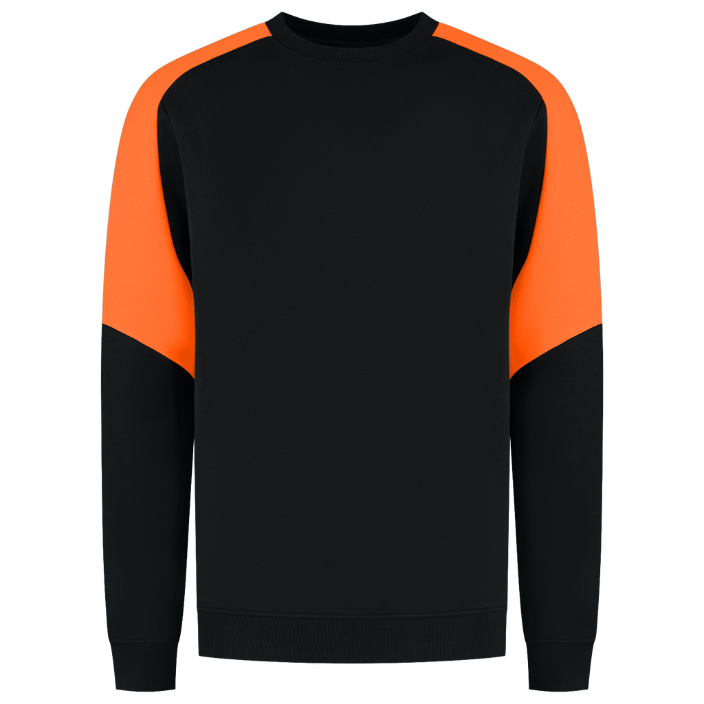 The Sweater Bicolor Redefined from Tricorp is a must have during the colder working days. This sustainable crew neck sweater is made from 65% organic cotton and 35% recycled polyester, made from durable 320 g/m² American fleece with a brushed interior for extra comfort. The bicolor color scheme is not only stylish, but also perfectly matches your corporate identity. Thanks to the regular fit and unisex fit, the Sweater Bicolor Redefined always fits well. Thanks to the OEKOTEX-100, RCS and OCS certifications, you can be sure that you are choosing a responsible option. The vest is washable at 60 degrees, available in sizes from XS to 5XL and can be supplied in the colors Black-Brightred, Black-Grey, Ink-Royalblue, Black-Brightred, Black-Orange, Ink-Royal Blaue, Teal-Black, White-Anthracite and Sand-Black. Combine this sweater with other items from the Redefined line for a complete, professional and sustainable work outfit.