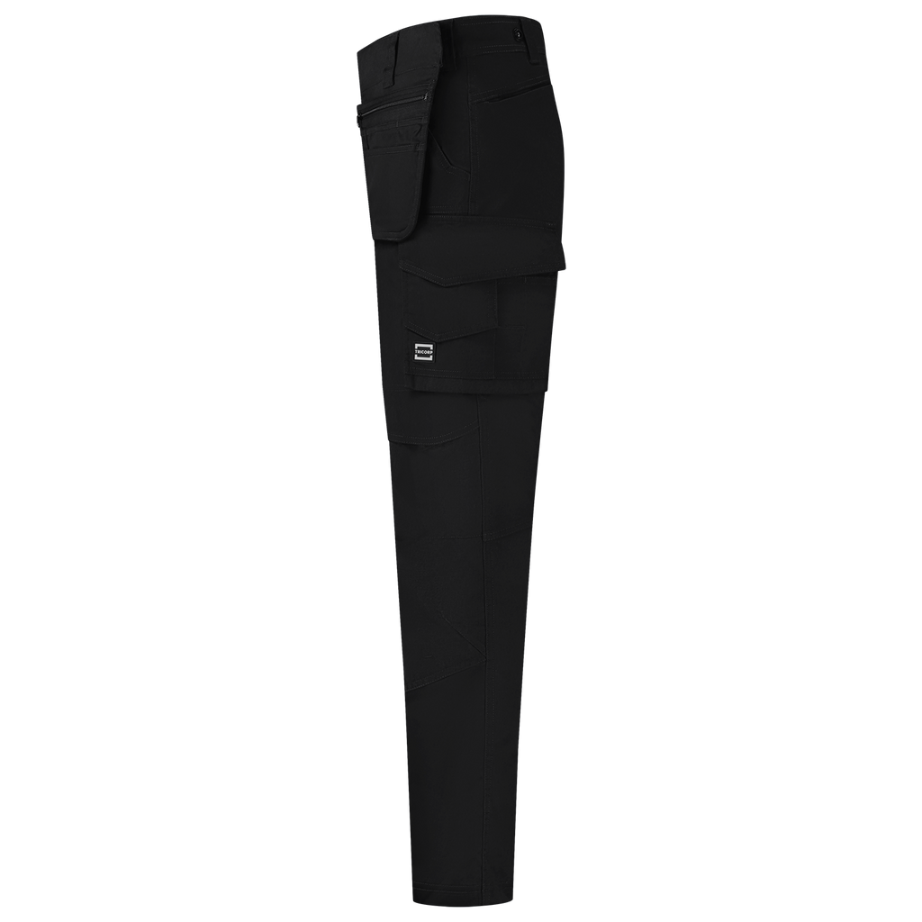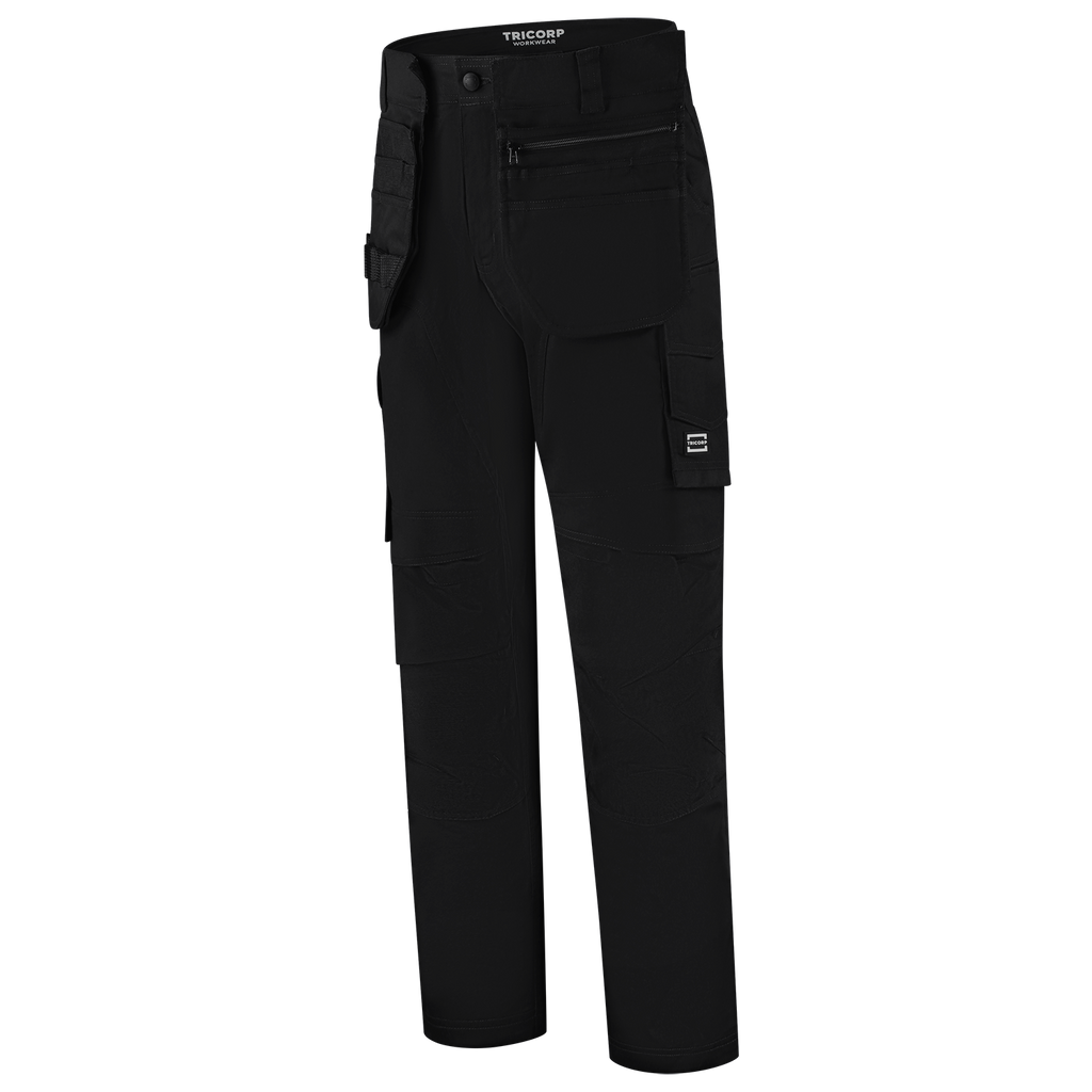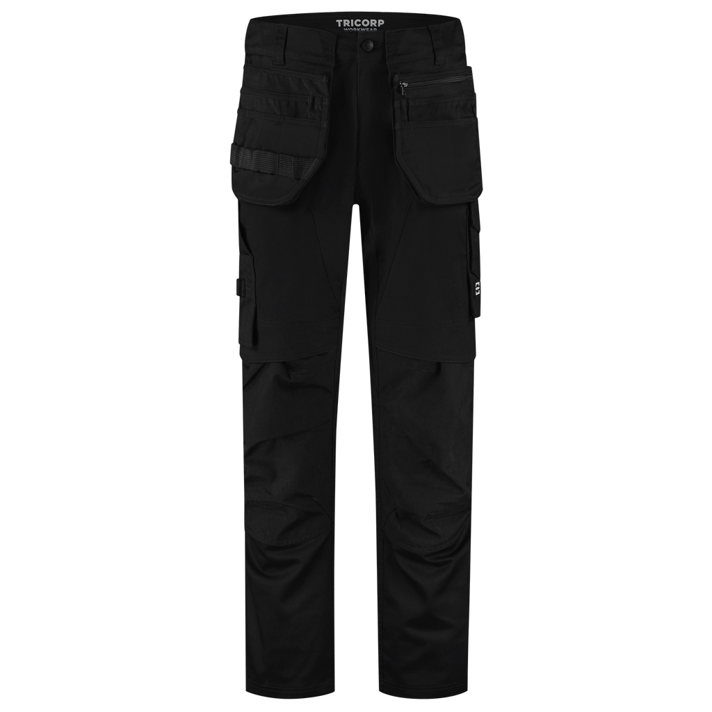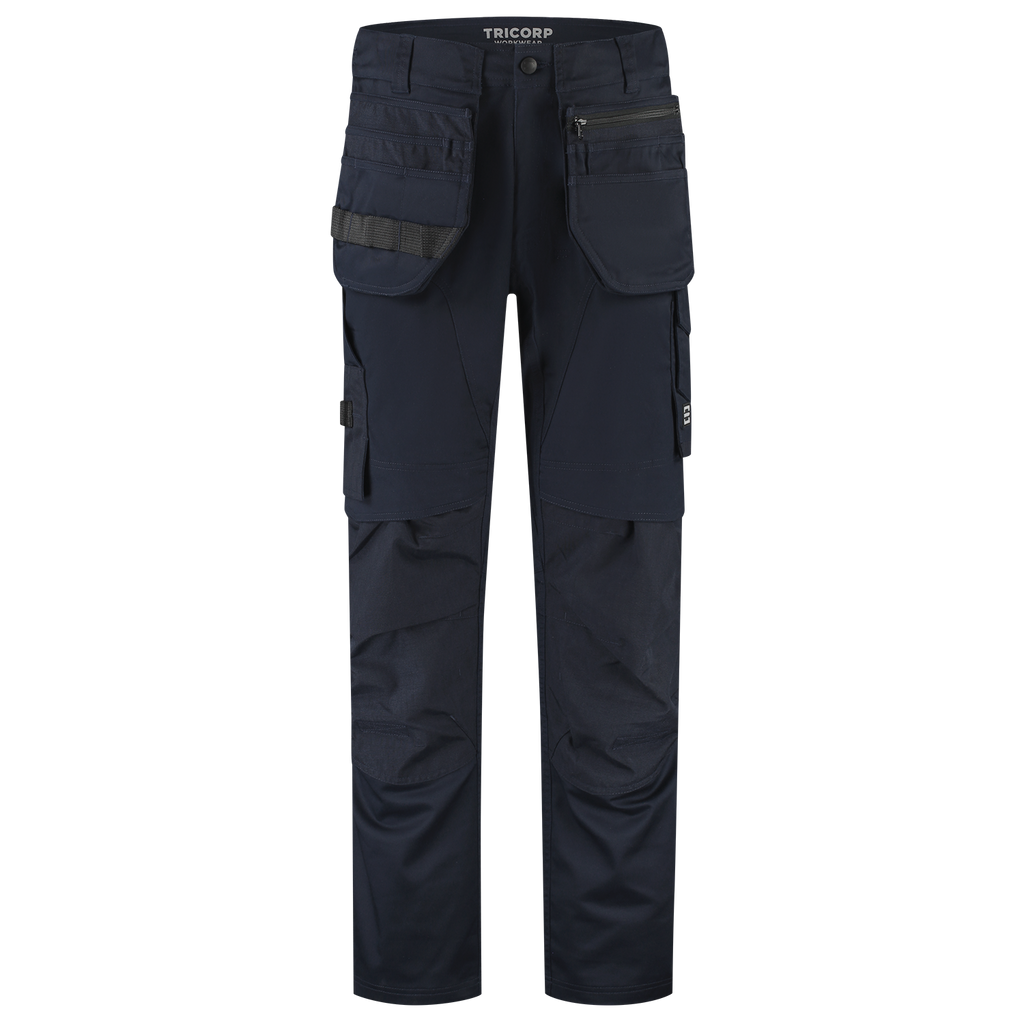 The Cordura 2-Way Stretch Redefined Work Trousers from Tricorp is the ideal choice for professionals who value performance and durability above all else. With 58% recycled polyester, 40% organic cotton and 2% elastane, with a fabric weight of 250 g/m2, these work trousers offer a comfortable 2-way stretch and a fit that moves with you with every job. These pants are built for heavy work: Cordura® reinforcements in vulnerable areas significantly extend the lifespan. Cleverly placed pockets, such as a ruler pocket, thigh pocket and smartphone pocket with flap give you quick access to your tools. The detachable D-ring, 2 detachable and the improved fit make the work trousers functional and pleasant to wear. In addition, the height-adjustable knee pockets with flap and top opening make the use of knee pads easy and comfortable. Thanks to the improved fit, belt loops and the choice of three lengths, you will always find the perfect fit. In addition, the detachable and adjustable tool pockets with smart pocket layout are perfect for storing tools, screws or your smartphone. One of the tool pockets can even be closed with a zipper, so your valuables stay safely stored. The tool pockets can be attached to both the front and the side of the pants, depending on your preference and work. Thanks to the Pro Wash label, these work trousers are industrially washable up to 60°C and remain strong, even after intensive use. Thanks to OEKO-TEX® Standard 100 and GRS and OCS certification, you also consciously choose sustainability. The Cordura 2-way Stretch Redefined Tool Pockets Work Trousers are available in 3 different lengths 42-66, 45-59 and 22-29 and the colours Black and Ink. Combine these pants with other items from the Redefined line for a complete, professional and durable work outfit.