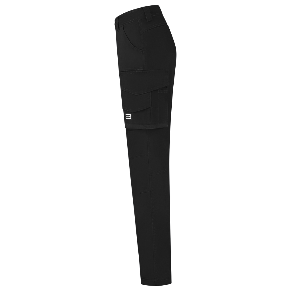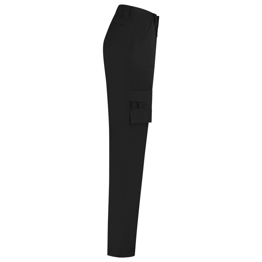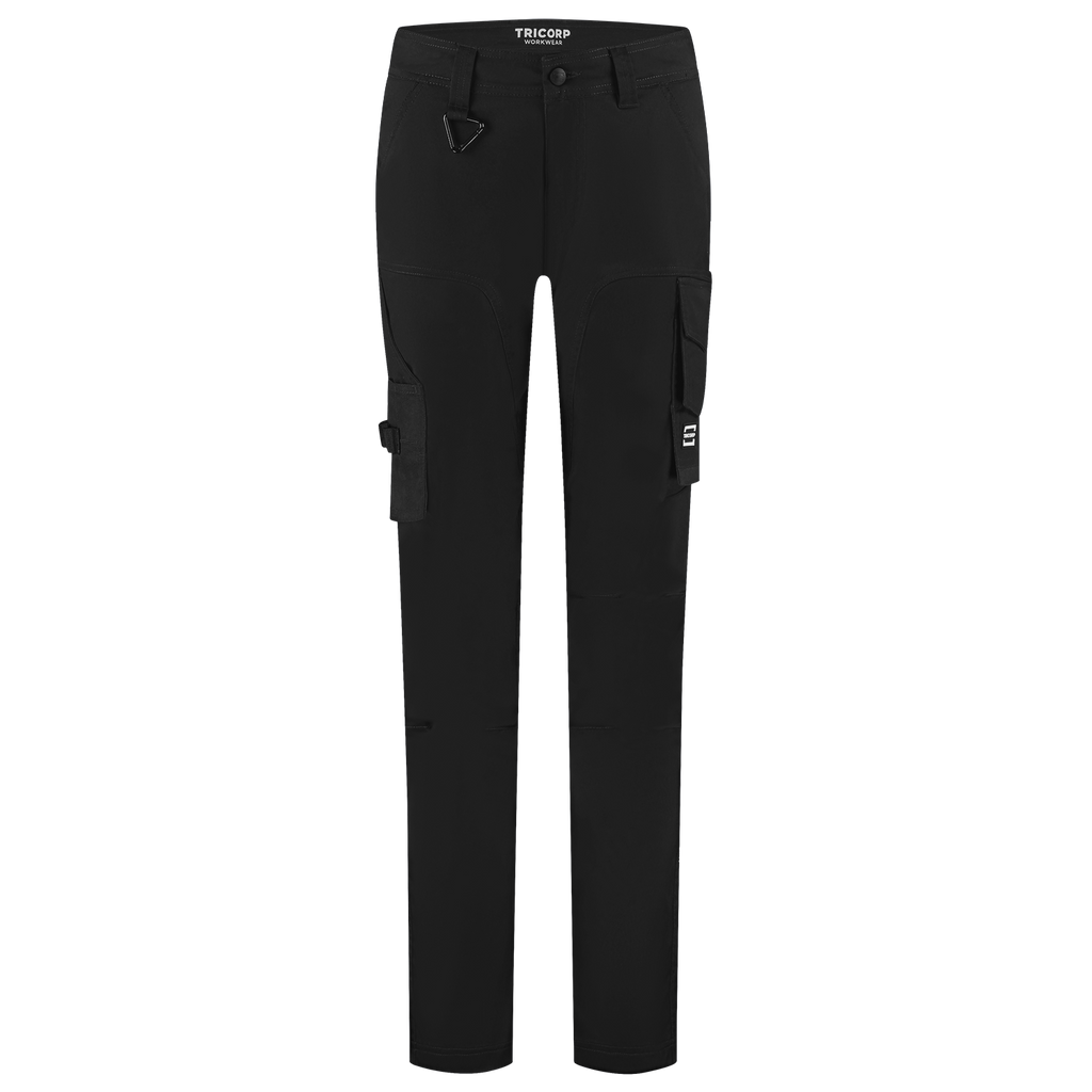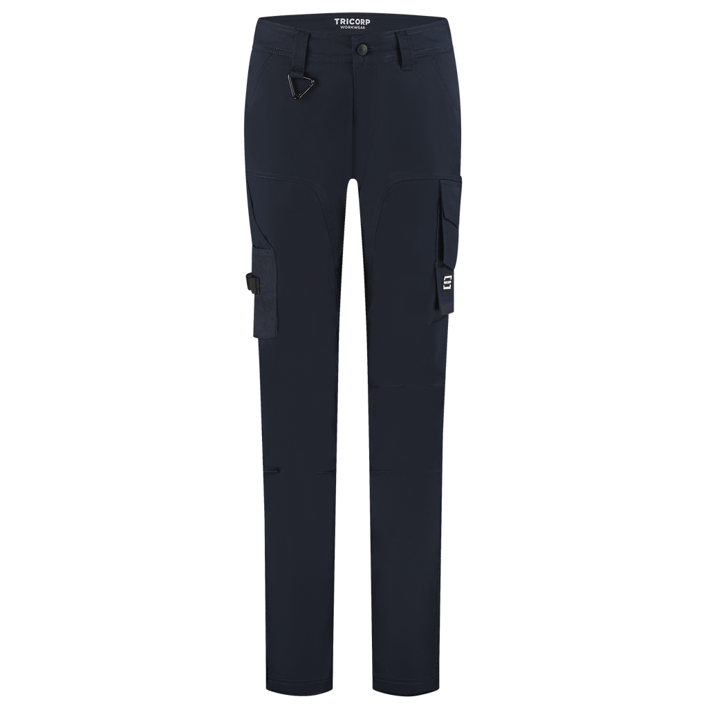 The Work Pants 2-Way Stretch Redefined Women from Tricorp is specially designed for women who want to work functionally without compromising on fit, comfort or appearance. These sustainable work trousers are made of a strong 2-way stretch twill mix of 58% recycled polyester, 40% organic cotton and 2% elastane, with a fabric weight of 250 g/m2, and perfectly match the feminine silhouette thanks to the specific women's fit and improved regular fit. With strategically placed Cordura® reinforcements in high-wear areas, these pants can withstand intensive daily use. Practical to use with smart pockets such as a ruler pocket, a multifunctional thigh pocket with flap and a dedicated smartphone pocket, you always have your tools and supplies within reach. The zipper, belt loops, detachable D-ring and the improved fit ensure optimal wearing comfort, day in and day out. Thanks to the Pro Wash label, the pants are industrially washable at 60°C, and they stay fresh and professional for a long time. The pants are also certified according to both GRS and OCS standards and have the OEKO-TEX® 100 quality mark, which stands for guaranteed safe and durable materials. The Work Pants 2-Way Stretch Redefined Women is available in sizes 32-48 and the colors Black and Ink. Combine these pants with other items from the Redefined line for a complete, professional and durable work outfit.