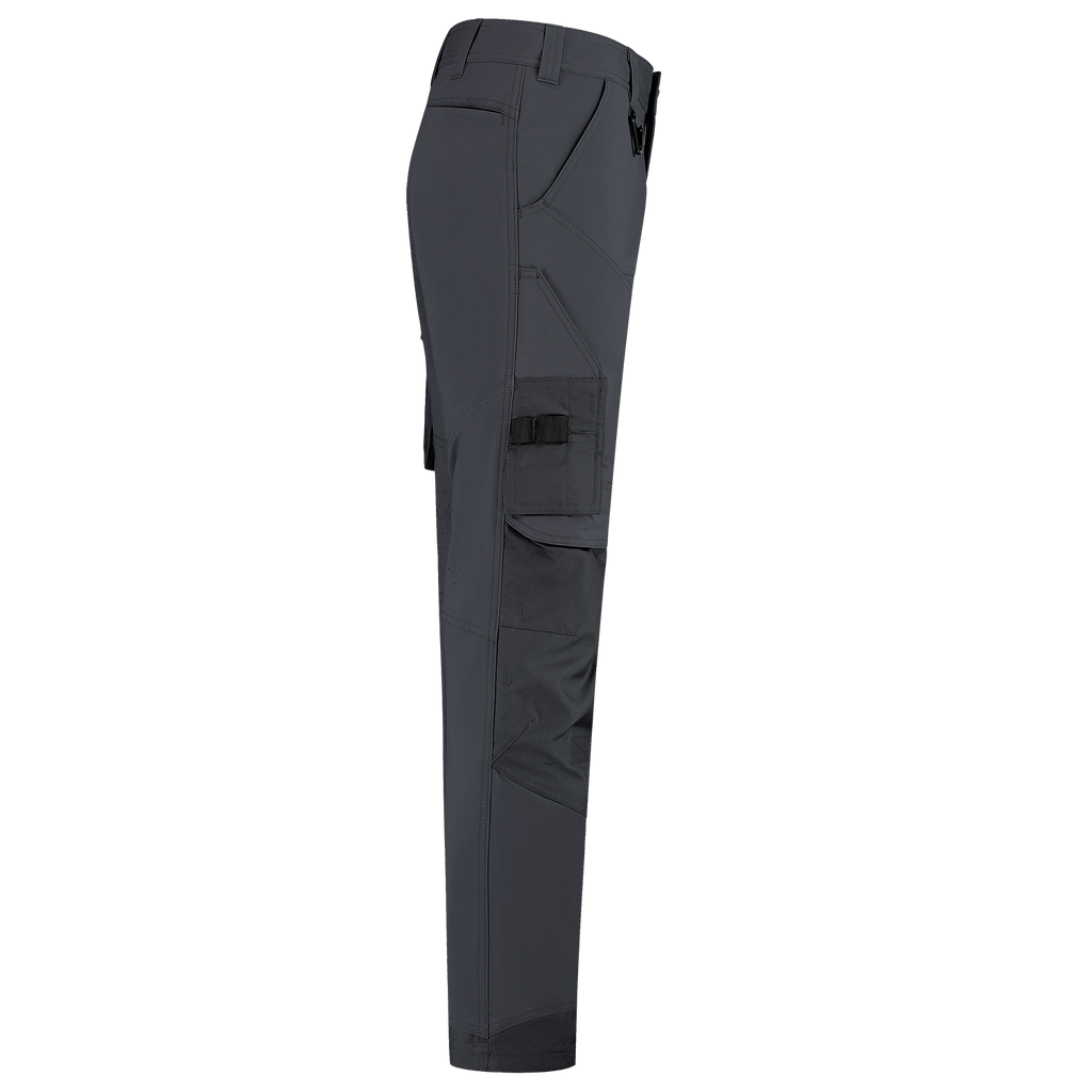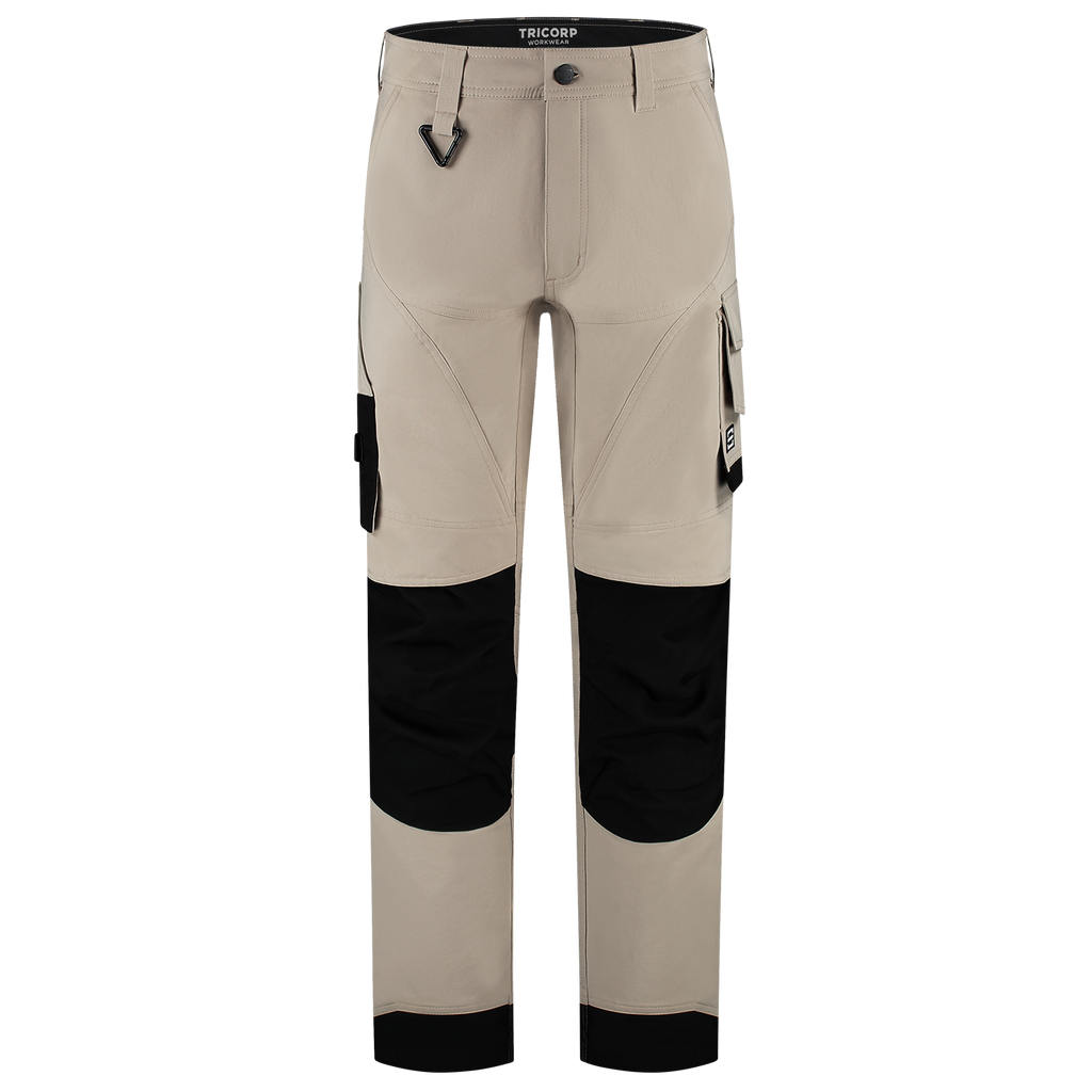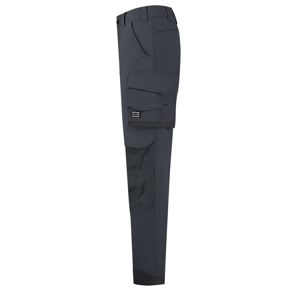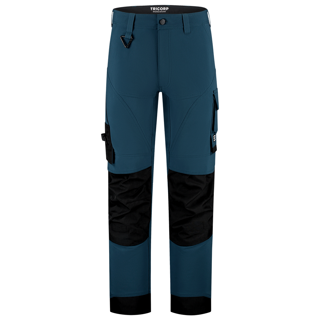 The Cordura 4-Way Stretch Redefined Work Pants from Tricorp is the perfect choice for professionals who do not want to compromise on comfort, durability or functionality. Made from 82% elastomultiester and 18% recycled polyester, with a fabric weight of 250 g/m², these pants offer an unrivalled 2-way stretch for maximum freedom of movement, even in the most demanding conditions. The combination of 4-way stretch, the water-repellent finish and ventilating zones in the back of the knees also guarantees optimal comfort during heavy physical work. The Cordura 4-way Stretch Redefined Work Trousers feature smart, well-thought-out details such as Cordura® reinforcements in vulnerable areas, a practical thigh pocket with volume pleat, ruler pocket, smartphone pocket with flap and sturdy back pockets. Everything is right where you need it, so you can continue to work efficiently. With the detachable D-ring and strong belt loops, tools and accessories have also been thought of. The wear-resistant Cordura® knee pockets, which are adjustable in height, are also ideal for anyone who regularly works on their knees. These work trousers are available in 3 different lengths from 42-66, 45-59 and 22-29, making them suitable for a wide target group of professionals. The regular fit ensures comfort and freedom of movement without looking sloppy. Moreover, the pants are certified according to OEKO-TEX® and GRS, so you can be sure that you are choosing responsible and high-quality workwear. The Cordura 4-Way Stretch Redefined Work Trousers are available in the colours Anthracite, Black, Ink, Sand, White and Teal. Combine these pants with other items from the Redefined line for a complete, professional and durable work outfit.