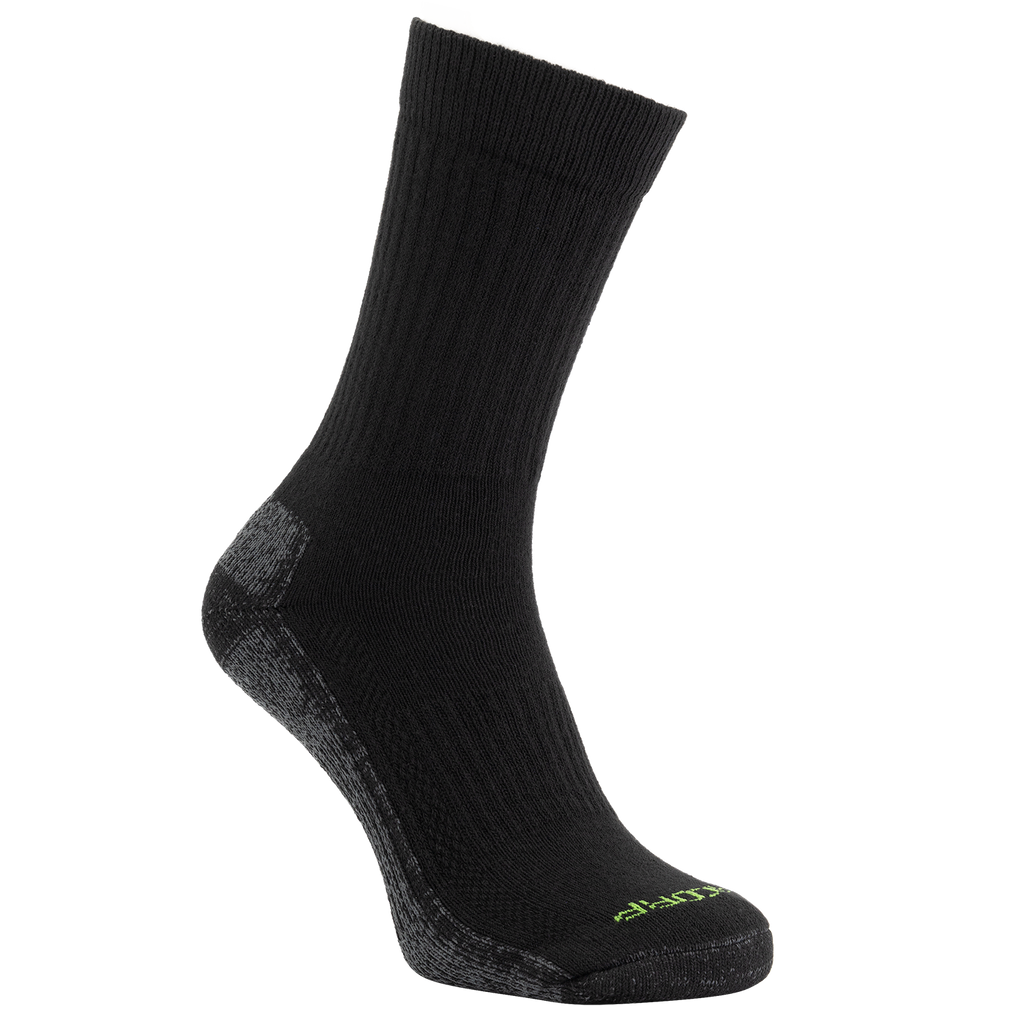 With the new Circular Work Socks from Tricorp you want to be on the move all day long! The comfortable terry footbed ensures optimal wearing comfort. You don't feel the toe seam. The reinforced heel and toe have been added for protection and a longer lifespan. A smart mix of recycled cotton, recycled polyester, polyamide and elastane makes the work sock work with you.