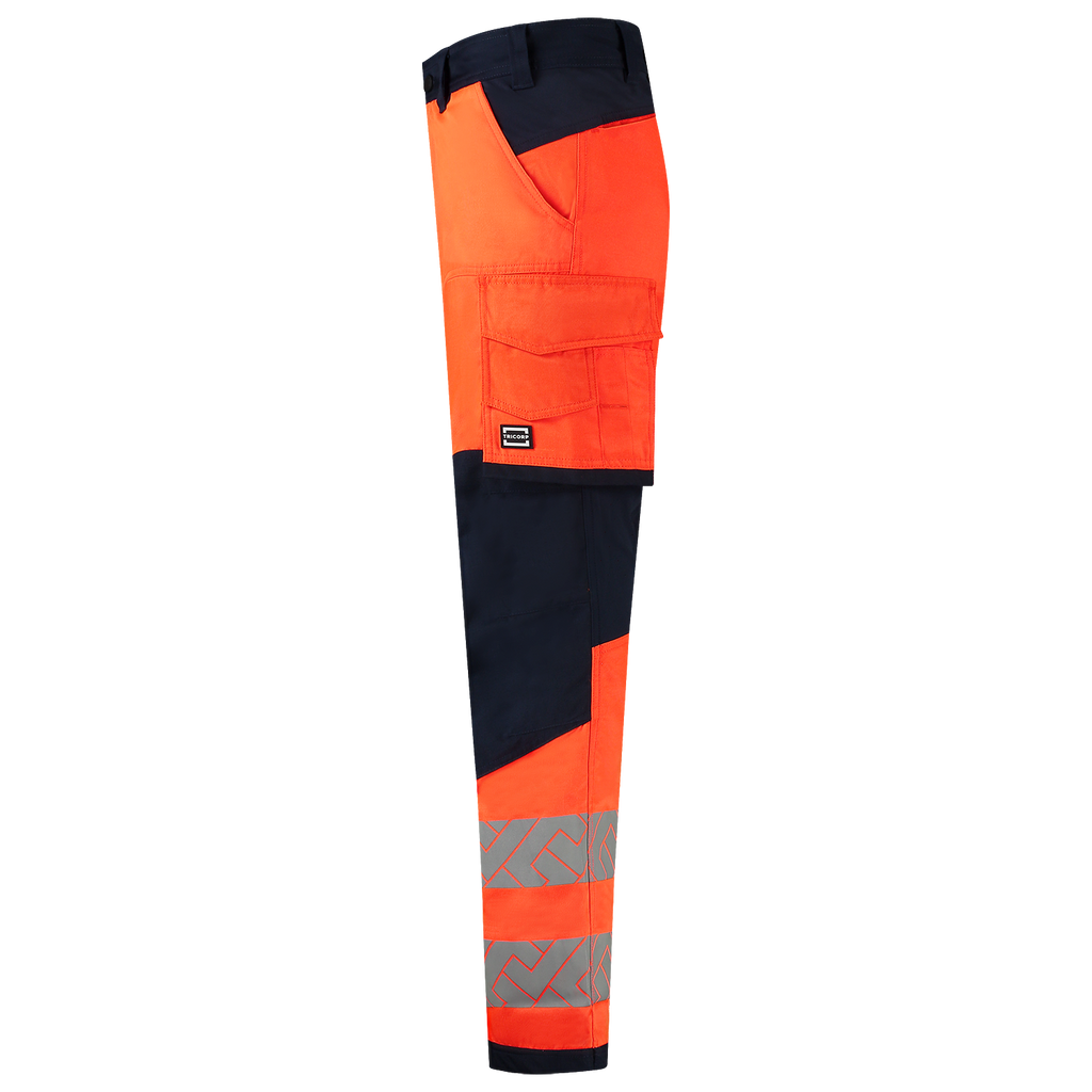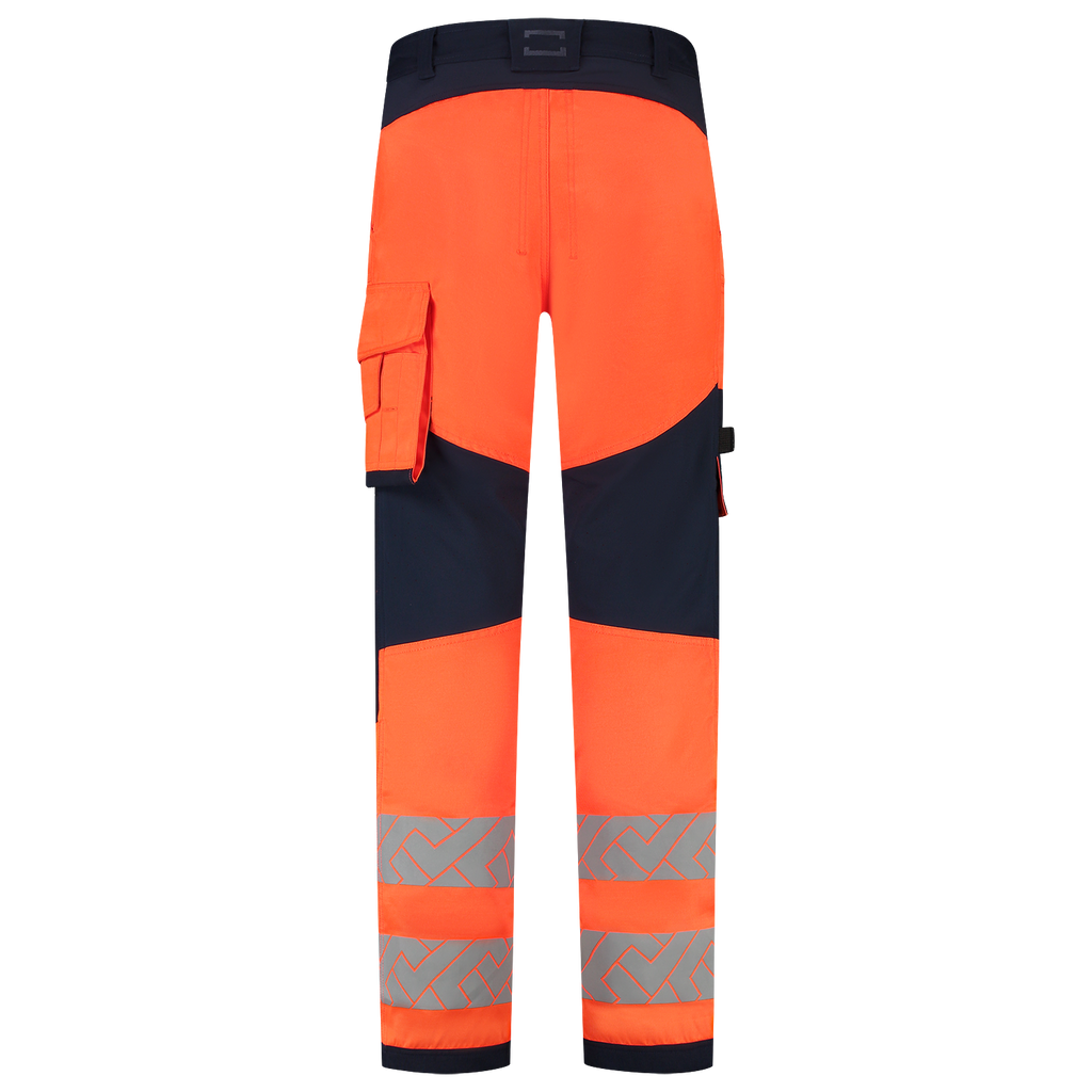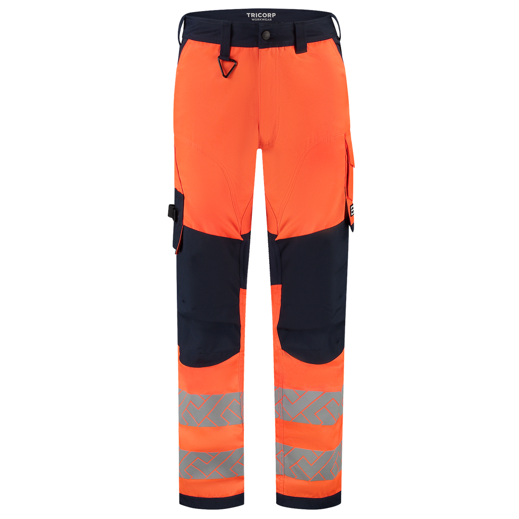 De Tricorp Work Pants Functional Stretch High Vis Redefined Knee Reinforcement is ontworpen voor professionals die onder zware omstandigheden werken, maar geen concessies willen doen aan zichtbaarheid of bewegingsvrijheid. Deze broek combineert slijtvast Cordura® knieversteviging met 4-way stretchpanelen op de juiste plekken, zodat u de hele dag comfortabel kunt bewegen. Deze werkbroek is gemaakt van een stevige maar flexibele materiaalmix van 58% gerecycled polyester, 40% biologisch katoen en 2% elastaan, met een stofgewicht van 250 g/m². Dit maakt de broek niet alleen een duurzame keuze, maar biedt ook maximale bewegingsvrijheid. Dankzij strategisch geplaatste 4-way stretchpanelen van 90% polyamide en 10% elastaan in het kruis en aan de achterkant van de knieën, beweegt deze werkbroek soepel met je mee. Het verhoogde achterpand is eveneens voorzien van 4-way stretchpanelen, waardoor de broek altijd perfect past. De combinatie van 2-way stretch keperstof en ventilatiezones aan de achterkant van de knieën zorgt voor optimaal comfort tijdens fysiek zwaar werk. Dankzij slimme details zoals een duimstokzak, een smartphonezak met klep, een dijzak met volumeplooi en Cordura®-verstevigingen op slijtagegevoelige plekken, is deze werkbroek gemaakt voor actie. De verbeterde pasvorm en de stevige ritssluiting zorgen ervoor dat je altijd klaar bent voor je werk. De broek is voorzien van een afneembare D-ring en praktische riemlussen en is verkrijgbaar in 3 verschillende lengtes. Bovendien zorgt de segmentale reflectie rond de pijpen voor een hoge zichtbaarheid, conform EN ISO 20471, waarbij deze norm tot 50 wasbeurten op 60 graden behouden blijft. Kortom, met deze werkbroek ben je niet alleen overdag, maar ook in het donker zichtbaar! Met GRS-certificering en OEKO-TEX® 100 bent u verzekerd van verantwoorde en veilige werkbroeken. De Functional Stretch High Vis Redefined werkbroek met knieversteviging is verkrijgbaar in de maten 42-66, 45-59 en 22-29 en in de kleuren fluorescerend oranje en fluorescerend geel. Combineer deze broek met andere items uit de High Vis Redefined-lijn voor een complete, professionele en duurzame werkoutfit.